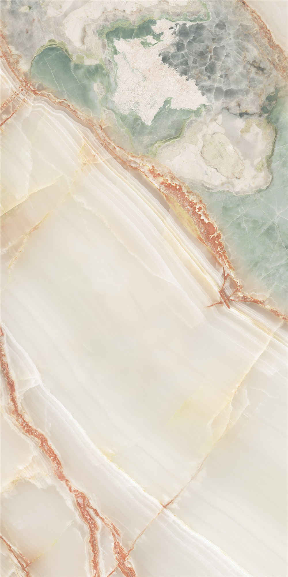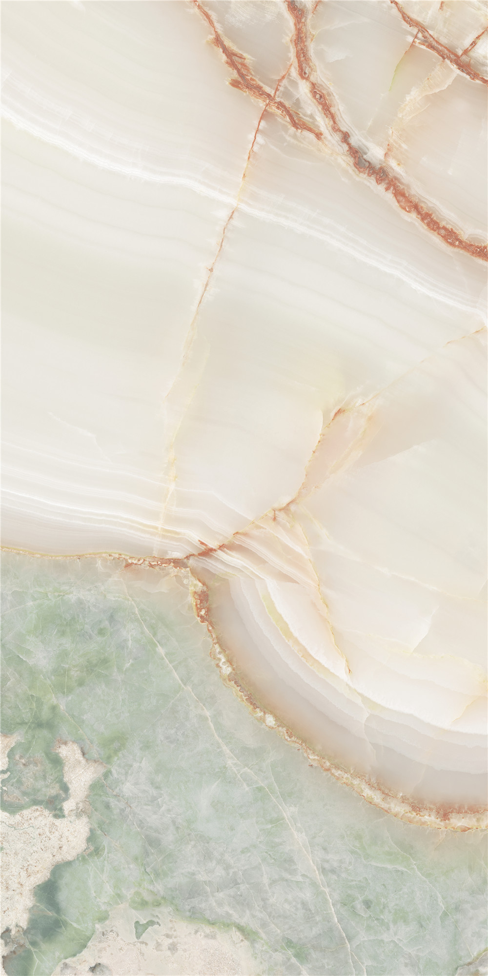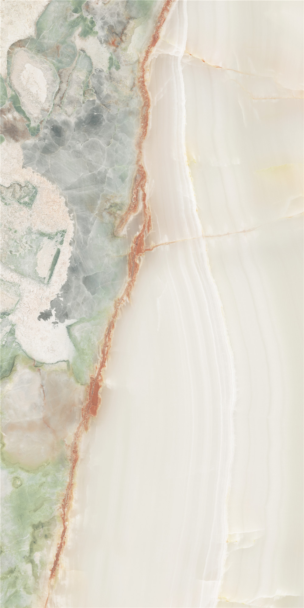 灵感源自珍稀名玉“青花玉”,墨色如烟絮游走于脂白肌理之中。设计捕捉其水墨泼洒般的自然逸趣,砖面纹理由深至浅过渡,还原玉石温润通透的质感,为空间注入沉静典雅、清逸灵动的东方气韵。